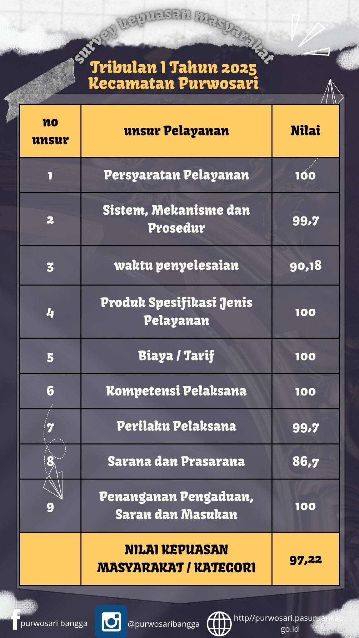 Survey Kepuasan Masyarakat (SKM) Tribulan I tahun 2025 - Kabupaten Pasuruan